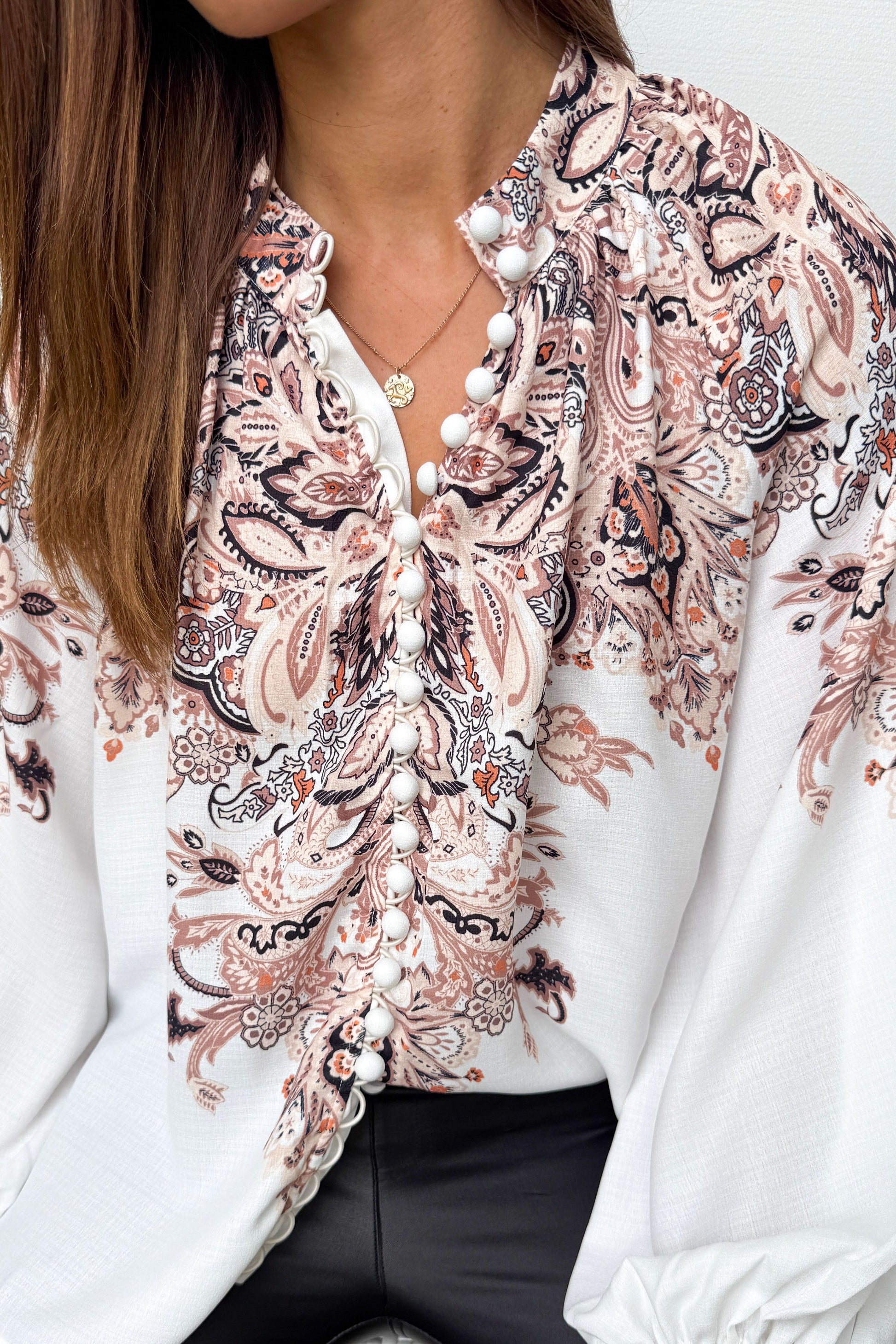 This blouse is truly stunning, combining a captivating print with a flattering silhouette and perfect length. The way the fabric drapes creates an effortlessly elegant look that suits a variety of occasions. Whether you’re heading to the office, enjoying a weekend outing, or attending a special event, this versatile blouse is designed to complement every moment with grace and style.